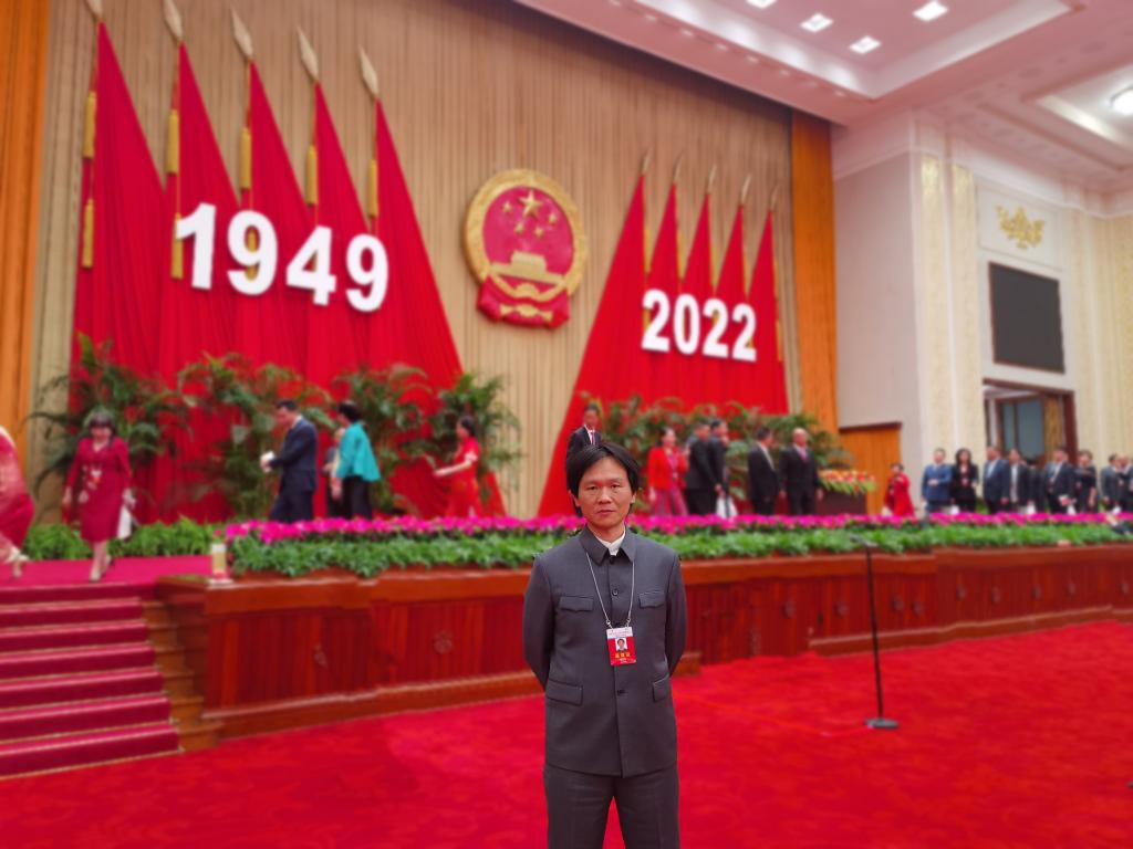 9月27日,太阳成城集团tyc234cc台湾教师张立本老师应邀参加由全国政协办公厅、中共中央统战部、国务院侨办、国务院港澳办、国务院台办、中国侨联在人民大会堂联合举行的国庆招待会,与近700名其他港澳台侨代表欢聚一堂,共同庆祝中华人民共和国成立73周年。