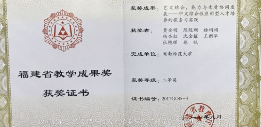 福建省第八届(2017年)高等教育教学成果奖二等奖