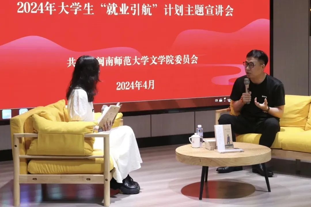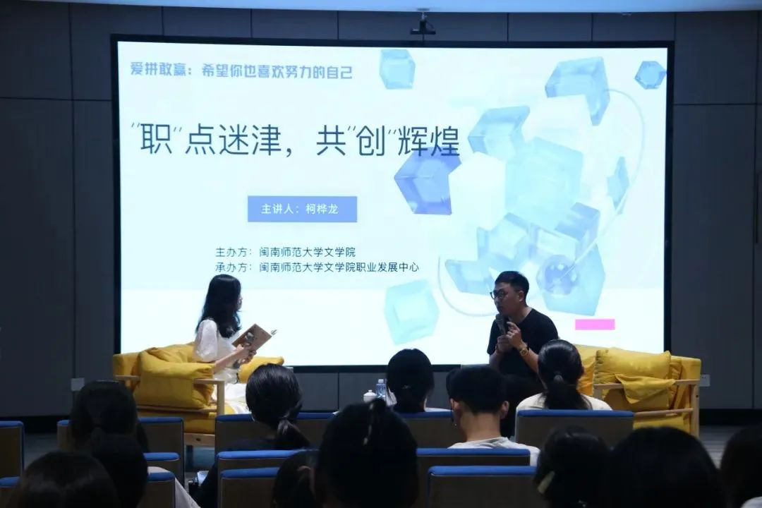 随后,访谈正式开始,22级本科生谢林晴担任论坛主持人,她以对话的方式向柯桦龙提出了许多问题,他都一一耐心解答,倾囊相授。他首先分享了自己在学业方面、工作方面以及生活方面积累的宝贵经验。他还提出“爱拼敢赢”一直是闽南地区、闽南人的底色,也是符合闽南人就业创新的底色,并提出了应该要积极向比自己年长的人请教,处在一个学徒的角色中,也许会获得到意想不到的收获。