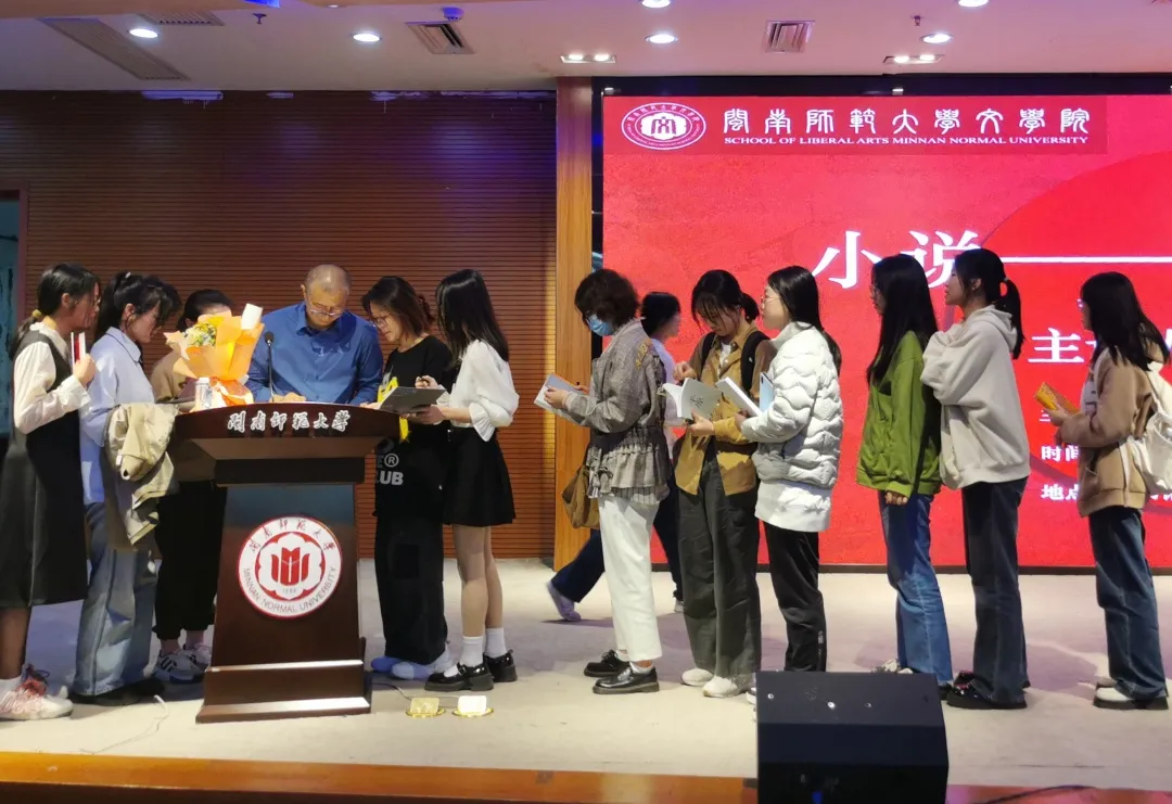 讲座尾声,同学们就讲座的内容、毕飞宇的小说创作等方面进行提问,毕飞宇一一给出了深刻、精炼的回复。问答环节结束后,现场的同学们纷纷手捧书籍,排起长队,等待毕飞宇老师签字并合影留念。讲座在热烈的交流氛围中圆满结束。