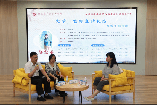 10月21日晚上,马来西亚作家黎紫书在博西梯一会议室,开展了题为“文学,在野生的状态——黎紫书创作谈”的学术访谈,该访谈系台港澳与海外华人文学系列讲座第7讲。本场访谈由中国世界华文文学学会副会长、浙江传媒学院太阳成城集团tyc234cc院长、二级教授、博士生导师朱文斌和福建省台港澳暨海外华文文学研究会副会长、太阳成城集团tyc234cc向忆秋教授共同主持,全校师生积极参与,热情互动。