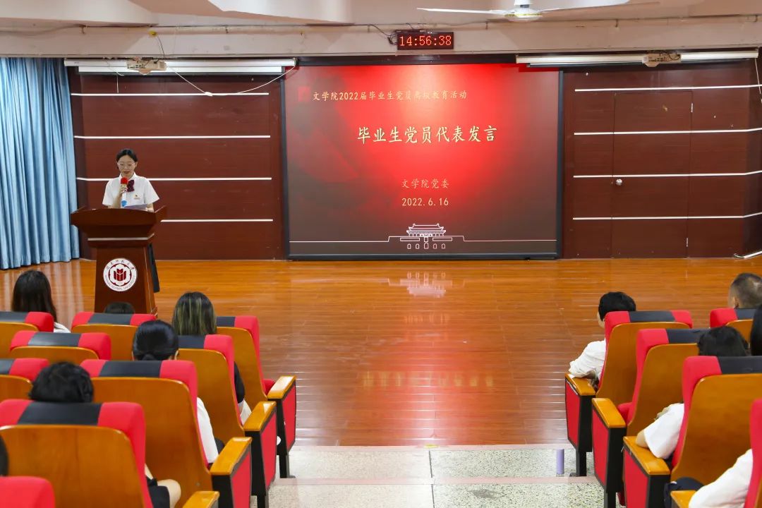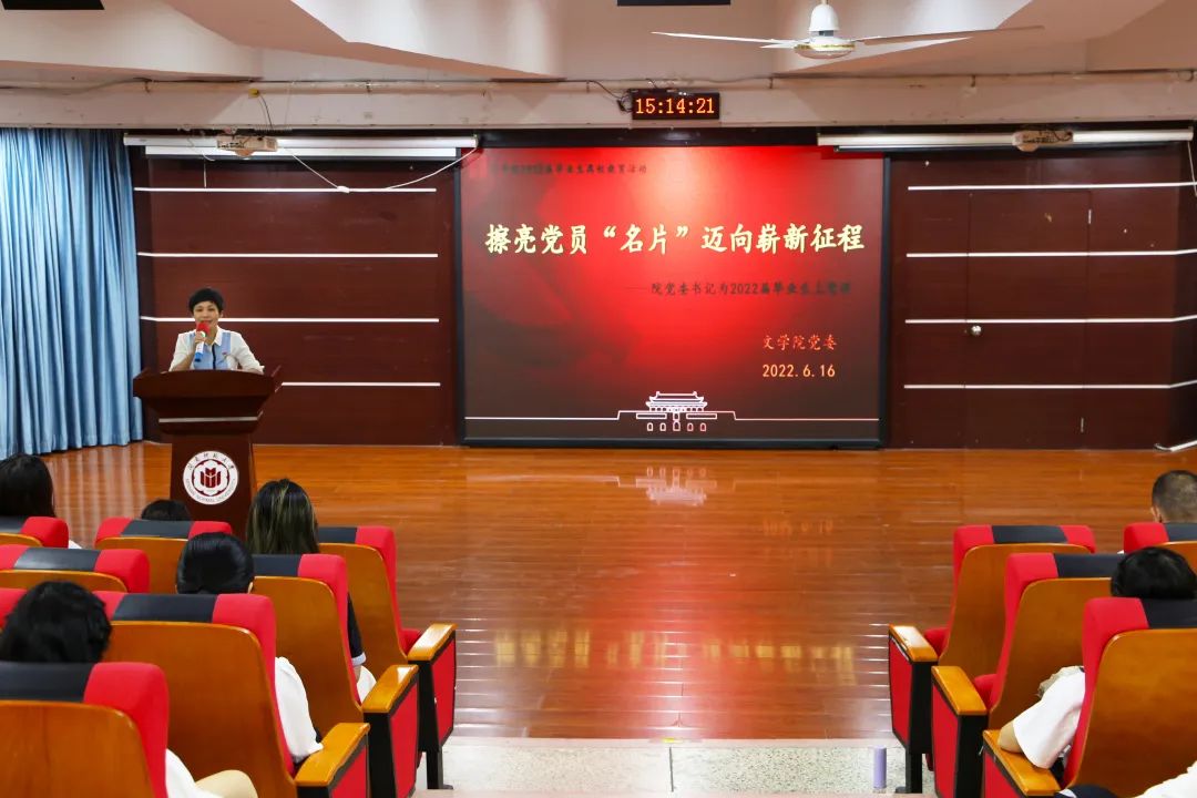 为进一步加强毕业生党员的党性修养,牢记党员身份,踔厉笃行,树立新时代合格党员的旗帜与标杆,6月16日下午太阳成城集团tyc234cc于博西梯一举行2022届毕业生离校教育活动。学院党委书记赵丽霞、副书记谢斌斌、团委负责人许新华以及112名毕业生党员到场参加。活动由党委组织员林枫主持。