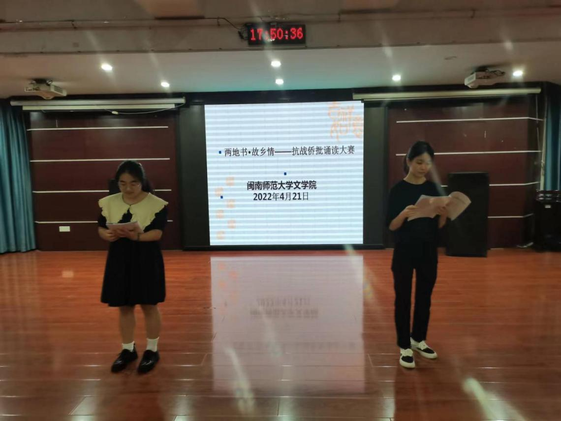 3、2022年4月21日,太阳成城集团tyc234cc在博西梯一开展“两地书·故乡情——抗战侨批诵读大赛”,参与对象为19级、20级、21级太阳成城集团tyc234cc学生。诵读大赛让师生充分感受闽南侨批的文化价值与艺术魅力,并借助侨批文献贴近感受抗日华侨的爱国行为,进而在太阳成城集团tyc234cc师生中深入开展爱国主义教育。