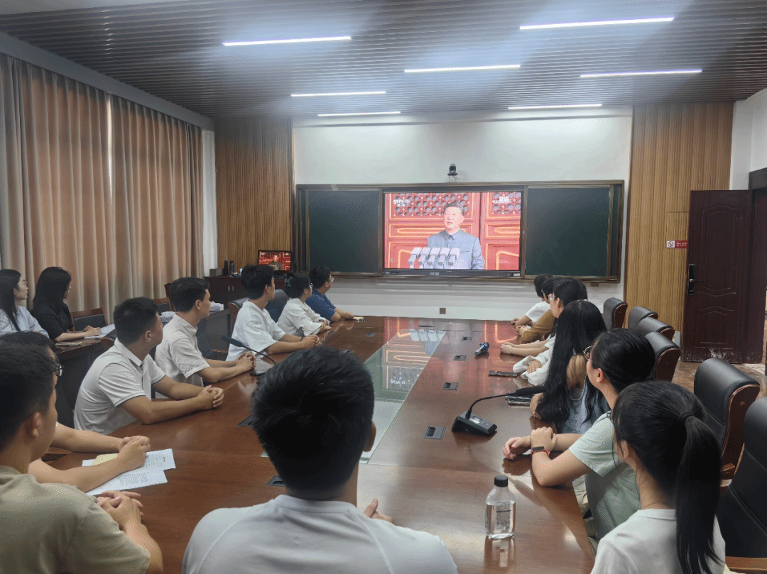 历史川流不息,精神代代相传。9 月 3 日上午,纪念中国人民抗日战争暨世界反法西斯战争胜利80周年大会在北京天安门广场隆重举行,太阳成城集团tyc234cc组织师生在博东110集中观看大会直播,共同见证这一承载历史记忆、彰显民族精神的庄严时刻。
