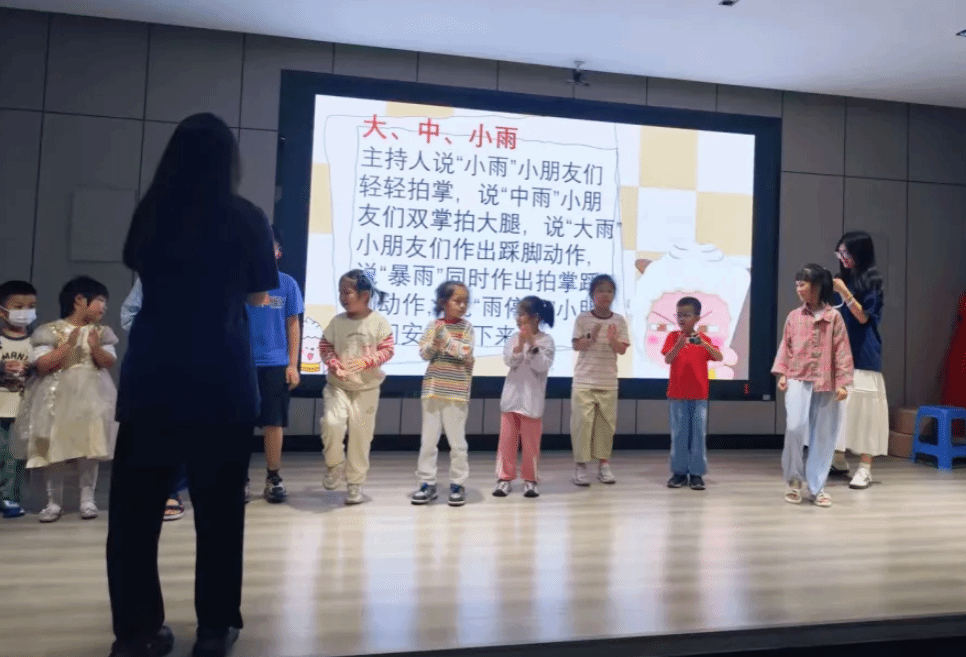 随着结班式步入尾声,小朋友们踊跃登台展示学习成果。有的带来流利的绕口令,有的讲述生动的小故事,精彩表现赢得阵阵掌声。在“大、中、小雨”“动物模仿秀”“我是机器人”等互动游戏中,小朋友们认真聆听主持人指令,做出对应动作,现场洋溢着欢快的笑声。当游戏环节的热闹渐渐平息,本次结班式也临近终点。小朋友们灿烂的笑容被定格在合影中,为这段充满收获与欢乐的学习时光画上圆满句号。