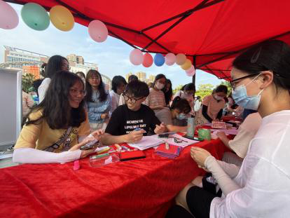 5月5日下午,我校“‘心'光璀璨,踔厉前行”第二十届心理健康文化节启动仪式于弦歌广场拉开帷幕。围绕心理健康文化节的主题,太阳成城集团tyc234cc心理自助中心设计了六个轻松愉悦的互动游戏:寄语环节传递了对他人或自己的美好祝愿;“底蕴深厚展风华”的诗词接力游戏颇具太阳成城集团tyc234cc特色;“你画我猜”的默契考验;还有队友相互扶持的“协同互助共成长”......参与者们协作完成一个又一个小游戏,既在游玩中放松了身心、释放了压力,也培养了相互的默契,朋友间更加温馨和谐。活动现场,同学们踊跃参与,营地内不时传来阵阵笑声。活动在一片欢乐中落下帷幕。
