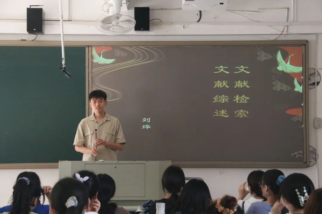 刘烨老师从文献的编辑方法和出版特点、文献的内容性质、文献载体形态和文献语种四个方面向同学们介绍不同的文献类型以及如何进行文献检索。他强调文献综述的重要性,为同学们深入浅出地介绍了进行文献综述的方法。他以佾舞为例生动形象地向大家讲解了确定学术论文选题的思路和方法。最后,讲座在老师现场为学生答疑解惑中圆满结束。