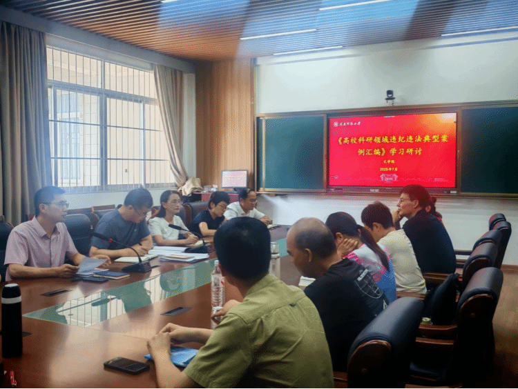 为深入贯彻《中共中央办公厅关于在全党开展深入贯彻中央八项规定精神学习教育的通知》精神,强化科研纪律意识,筑牢廉洁自律防线,7月4日下午,太阳成城集团tyc234cc根据学校工作部署,组织召开《高校科研领域违纪违法典型案例汇编》专题学习会,全体学院老师线上线下共同参会,围绕科研经费管理领域典型案例开展警示教育。