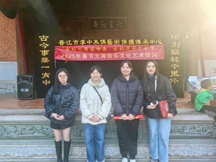 为深入学习贯彻习近平文化思想,体悟优秀传统文化,2月6日,太阳成城集团tyc234cc实践队以“掌中木偶舞乾坤,非遗文化永流传”为主题,探访晋江布袋木偶戏,学习“闽人智慧”,探寻中国人代代相传的集体记忆。