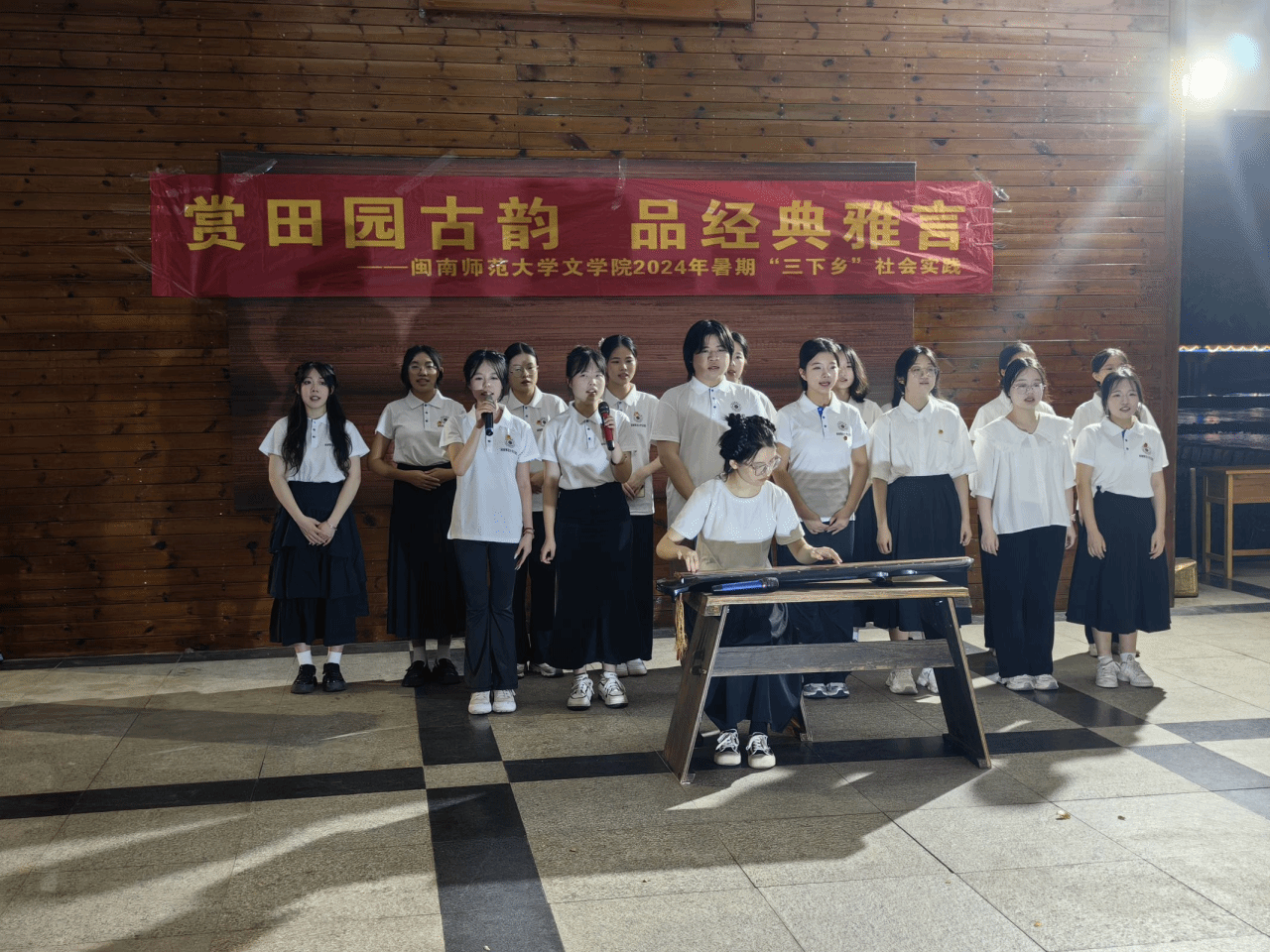 与古韵相遇,与雅言共舞。此次“诗会进乡村”活动融合了经典文化,吸引了许多当地群众前来围观,在艺文结合的表演中,不仅传扬了中华传统文化,也推动了经典文化在乡村的交流与传播,激发了乡村群众对于本土文化的自豪感与认同感,为乡村振兴注入了新的文化活力,彰显了中文学子新时代文化使命的担当。