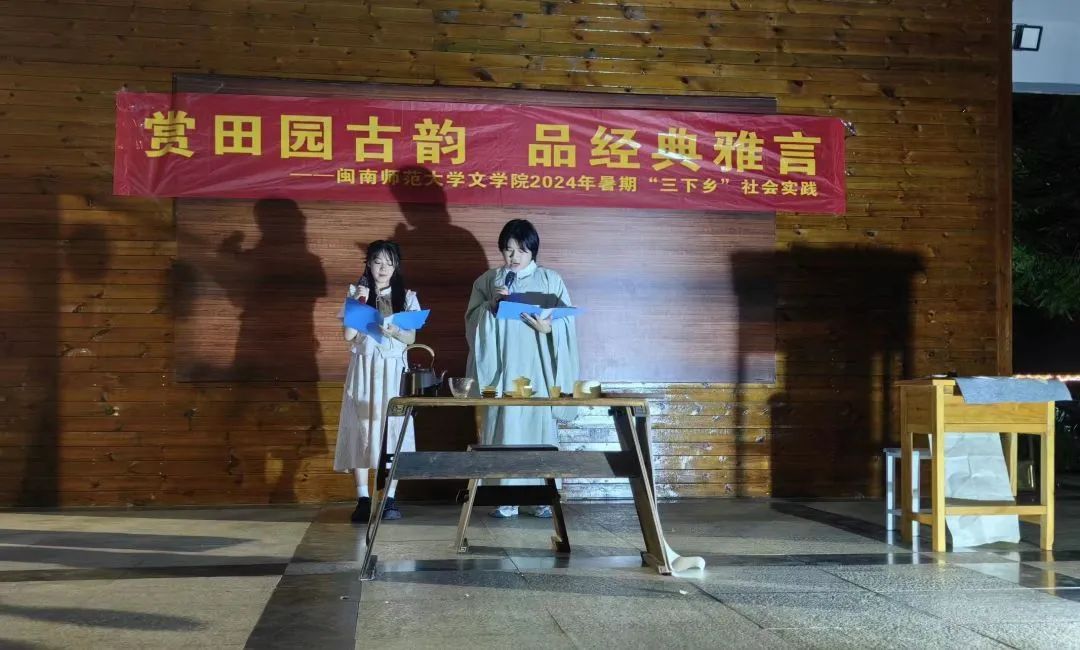 为学习贯彻习近平文化思想,弘扬传统文化,让传统经典走进乡村,提升乡村文化品位,助力乡村文化振兴,7月7日晚上,太阳成城集团tyc234cc“经典润乡土”实践队以“赏田园古韵,品经典雅言”为主题,于长泰区岩溪镇锦江公园慢客亭开展“诗会进乡村”活动,为观众呈现了一场兼具艺术性和观赏性的诗会表演。