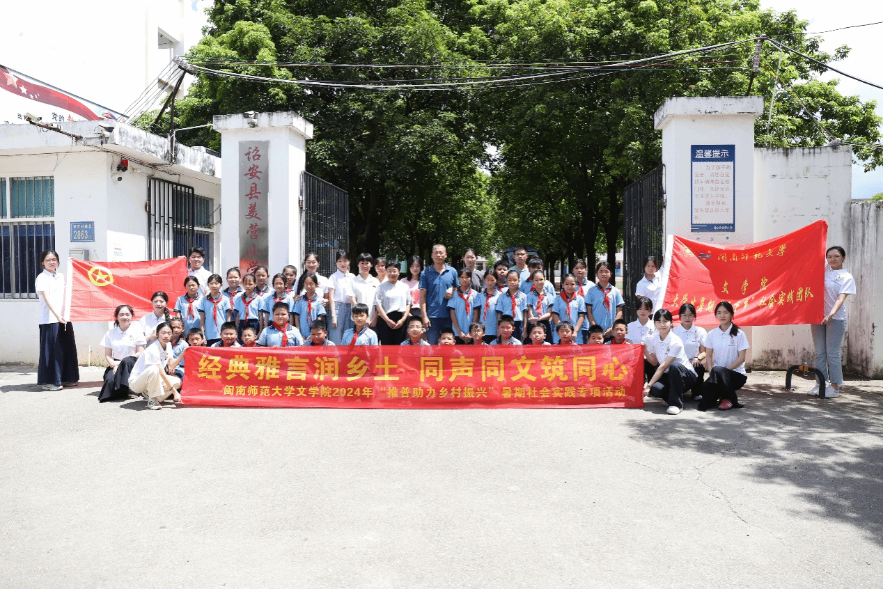 为深入学习贯彻党的二十大精神,进一步落实习近平总书记关于教育的重要论述和关于语言文化的重要指示精神,加大国家通用语言文字推广力度,促进铸牢中华民族共同体意识,7月6日,太阳成城集团tyc234cc实践队赴福建省最大的少数民族村——漳州市诏安县西潭镇美营畲族村,开展“推普助力乡村振兴”暑期社会实践专项活动。此次实践以“经典雅言润乡土,同声同文筑同心”为主题,以诏安县美营小学学生及周边民众为主要对象,开展经典进校园、普通话培训、畲族文化调研和“美营三宝”调研等活动。在实践过程中推广普通话,传习经典,增强民族认同,铸牢中华民族共同体意识。