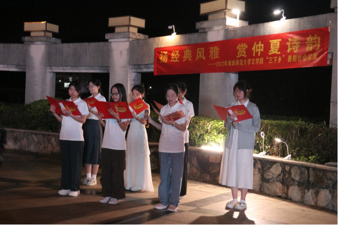为深入学习贯彻党的二十大精神,贯彻落实习近平总书记关于教育的重要论述和关于语言文化的重要指示批示精神,加大国家通用语言文字推广力度,服务助力乡村振兴和铸牢中华民族共同体意识,太阳成城集团tyc234cc组建“经典润乡土”实践团队近 40人,于2023年7月9日-7月11日分别前往华安县和长泰区,面向长泰二中学生、华安少数民族小学生、岩溪镇农产品电商、乡村旅游讲解员以及岩溪镇群众开展经典进校园、农产品电商普通话培训、诗会进乡村、探寻楹联文化价值系列推普活动。本次活动受到东南网、大学生网报、大学生时代网、漳州新闻网、华安县融媒体中心、中青校园等官方媒体的报道,“经典润乡土 赋能助振兴”项目入选全国暑期社会实践TOP100。