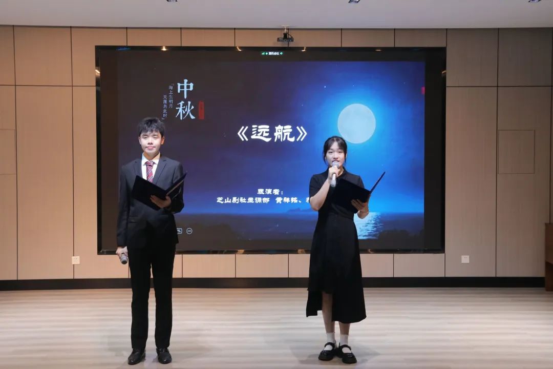 下半场活动,全体师生移步博东中庭参加中秋茶话会赏月品茗。各组代表上台吟诗作唱,更有在场老师分享从教心得,欢声笑语共度良宵。