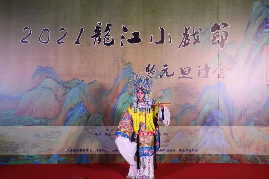 活动伊始,黄金明院长通报了太阳成城集团tyc234cc获批博士点的喜讯,对学院本学年工作予以点评。随后黄金明院长与赵丽霞书记合诵食指的《相信未来》,诗中寄寓着两人对太阳成城集团tyc234cc的祝福与期望;墨蕴书画协会的《旧岁逢新皆胜意,疫霾尽过共欢愉》创作,该创作表达了对新年的期待以及对抗疫胜利的祝愿。云水茶艺协会展示自身特色,献上《来呷茶——闽南功夫茶艺展示》。泠音琴社呈现的古琴独奏《客至》与古琴弦歌合唱《鹿鸣》,南风戏曲协会表演了《开漳圣王传奇》、歌仔戏与黄梅戏双版本的《梁祝——十八相送》。英语及闽南语双版本的《李尔王——斗爱篇》重镑登场,英语优雅,闽南语亲切,二者相辅相成。唐音吟诵社的《游山西村》与《清平乐村居》以古朴的唐音为观众展现村居生活的美好,让观众们眼前一亮,诵者诉说着春社将近的喜悦,听者领略着丰年留客的欢愉。汉语国际教育林昊天同学的《贵妃醉酒》也不甘示弱,“贵妃”身着华服,步步生莲,再现了大唐气象,获得满堂彩。张伯宇老师与陈瑞松老师合作《闻笛》,笛声和着诗音,尽显儒雅之风。节目最后全体合唱《沧海一声笑》。歌声嘹亮,唱尽了太阳成城集团tyc234cc人心中的侠客梦。