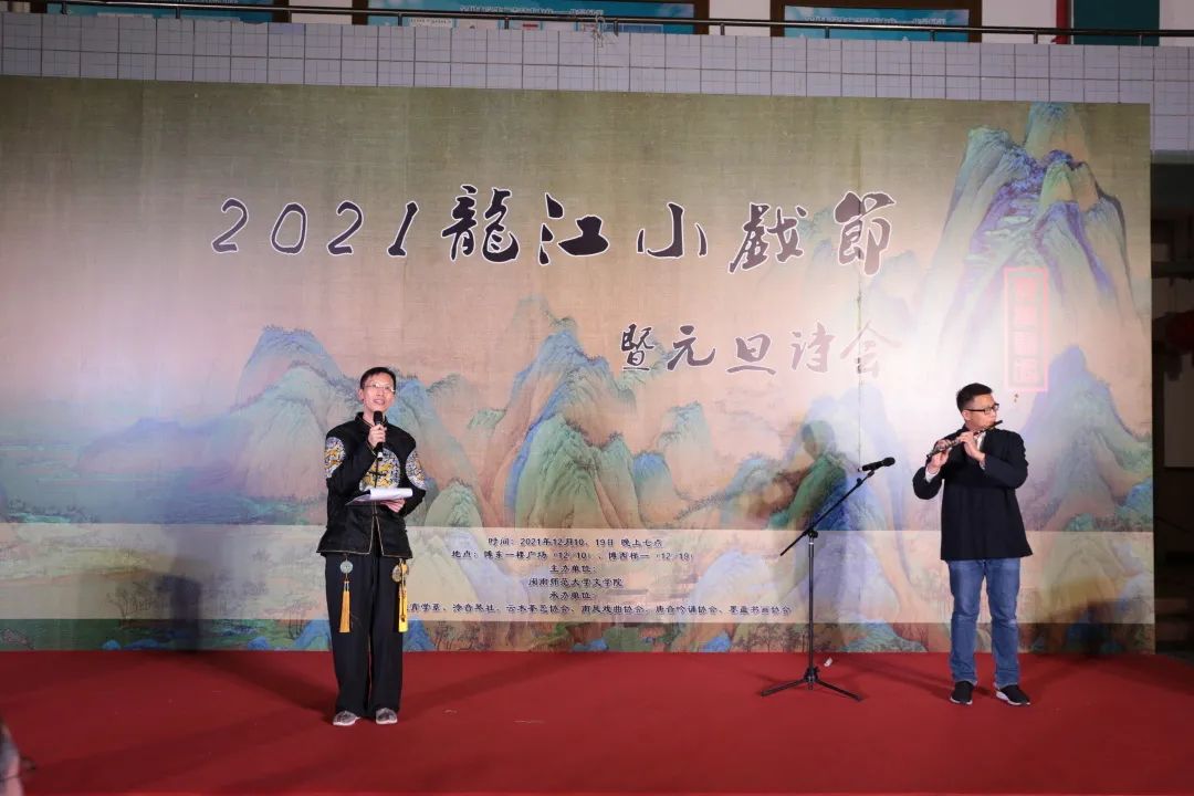 12月10日晚,太阳成城集团tyc234cc2021“龙江小戏节”于博东一楼举行。本次龙江小戏节以“说学逗唱”为主题,太阳成城集团tyc234cc党政领导,部分教师代表,校友代表和友好单位代表受邀出席。本次活动由台湾老师陈瑞松指导策划并主持。