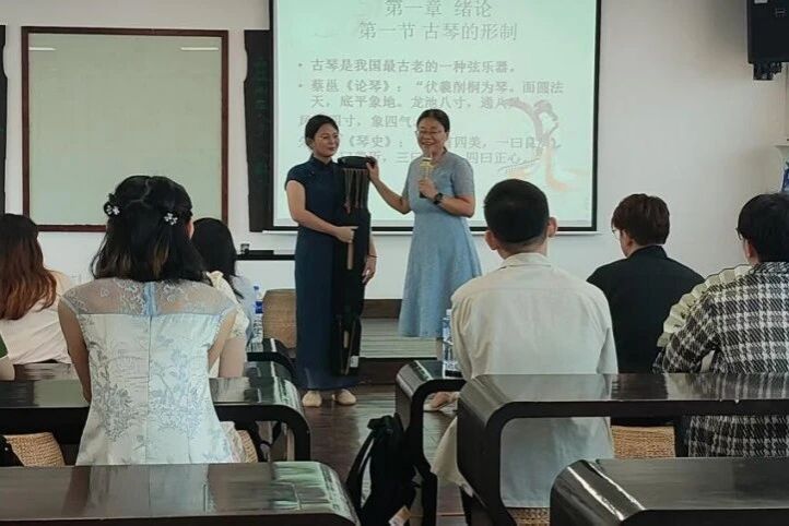 9月14日,张艳辉以“漫谈古琴史”为主题开启首场课程。她首先介绍了古琴作为“圣人之器”的独特地位,强调其作为非物质文化遗产的重要意义。接着,围绕古琴形制的演变展开讲解,从最初的五弦琴到“文武七弦”琴,详细阐述了古琴独特的扩音结构以及选材的讲究,如选用陈年老木制作琴身可使琴音醇厚,用桑叶擦拭丝弦能让音色纯净。她还分享了蔡邕制“焦尾琴”的典故,让成员们对古琴制作工艺的精妙有了直观认识。