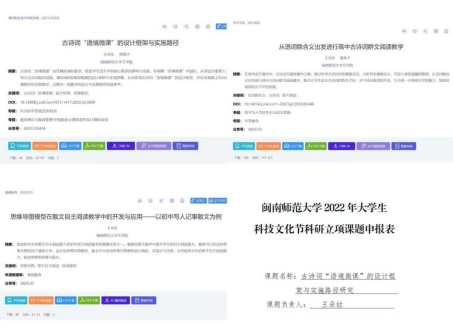 •2023年6月,论文《古诗词“语境微课”的设计框架与实施路径》发表于《漳州职业技术学院学报》2023年第2期