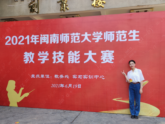 “德高为师,身正为范”。直至三年前,家人朋友问起我未来的职业选择时总会说道:“以后,你就是一位老师了吧?”我总是笑着回答,“不一定嘞。”总会觉得,我的能力远不足以担起教育的重任。但是,幸运的我总是不乏身边人的认可。郑丽霞老师在微格教学课拿我的教学视频举例分析,这份鼓舞是我对自身教师专业素养认可的起点。学院十分重视对师范生教育教学能力的培养,经老师的选拔和推荐,我进入学院金牌教师技能决赛,荣获三等奖。对当时的我来说,这已经是很可喜的成绩了。(图)