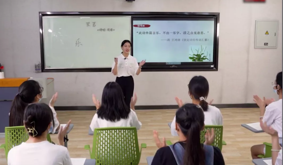 让我对教学产生浓厚兴趣的契机是一场旁听的教师评课,老师们对一篇文本深入挖掘,解读之精妙,令人拍手称绝。我当时只有一个想法:我也想成为这样口吐莲花的老师。三个月的实习,三个月的训练让我更深入地了解教师职业,更熟练地运用教学技能。向阳老师妙趣横生的课堂,陈丹老师充满尊重与友爱的班级氛围,廖敏老师令人眼前一亮的板书设计,闽英老师提纲挈领的专业指点……无一不潜移默化地影响着我,让我从心里慢慢靠近教育与教学。(图)