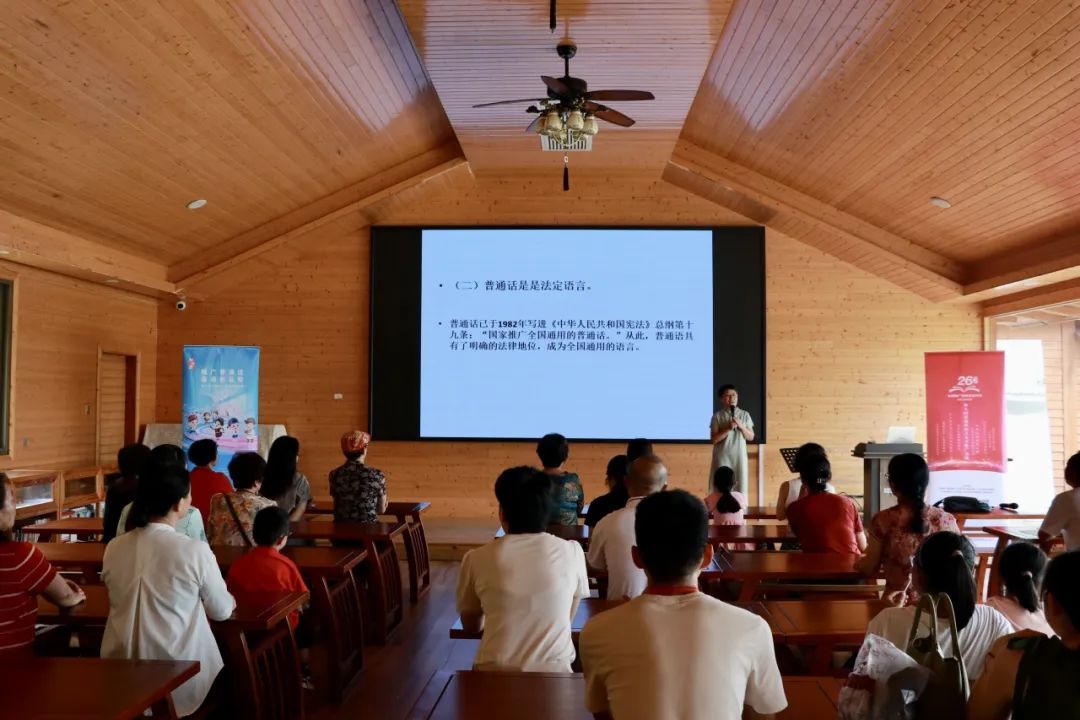 9月16日下午,国家语言文字推广基地(太阳成tyc234cc)办公室主任、太阳成城集团tyc234cc中国语言文学系主任、省级普通话测试员肖模艳副教授一行走进南山书院,开设主题为“书香城市,‘语’你同行”的公益讲座,向社会推广普通话,提高市民普通话意识。并解答了“普通话与方言的关系”“如何有效学习普通话”等推普过程中常见的问题,受到现场群众的广泛好评。