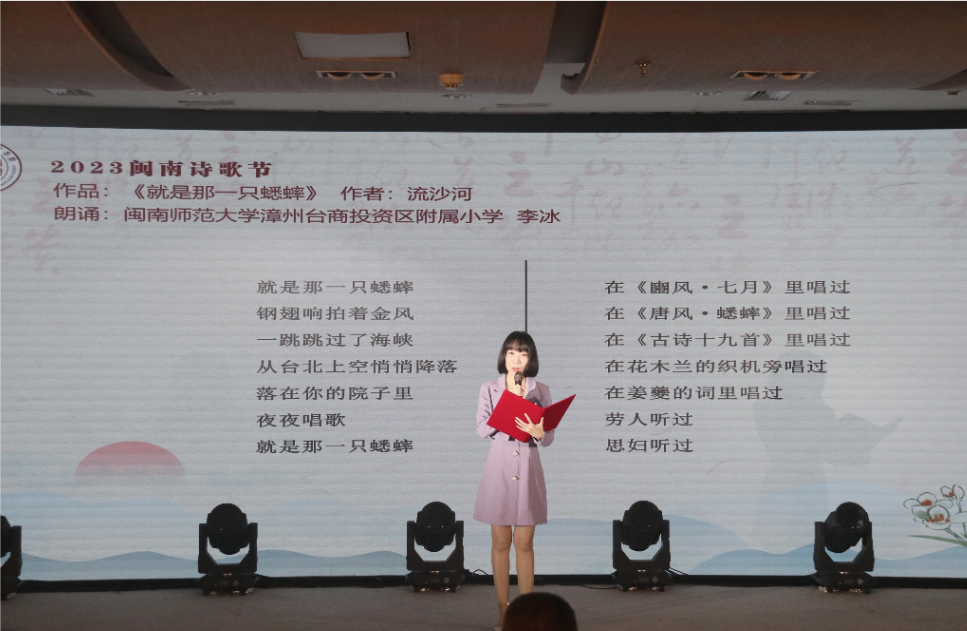为深入学习贯彻习近平新时代中国特色社会主义思想,加强两岸语言文化教育的交流与合作,推进两岸语言文化教育的传承与发展,增强中华民族文化认同感,近日,以“同声同文,诗必有教”为主题的2023闽南诗歌节开幕式暨诗歌朗诵会在太阳成tyc234cc逸夫图书馆五楼报告厅举行。